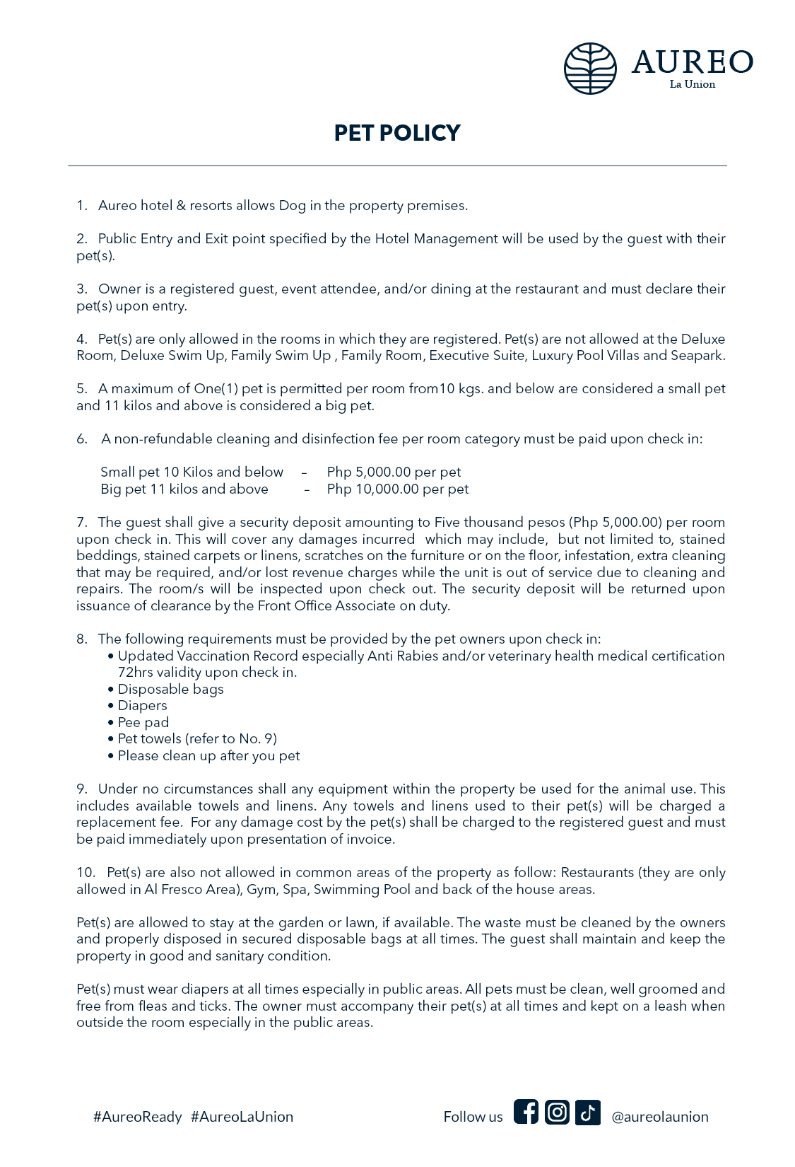 Aureo Compendium Click the button below to download the complete digital compendium of Aureo La Union. Contents: House Rules Pet Policy Telephone Directory Channel Guide Watersports Activities Spa & Massage Rates Laundry Services Resort Map Room Service Menu Restaurant Menu Bar Menu Ice Cream Menu Dining Option Download PDF